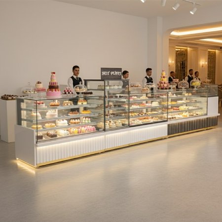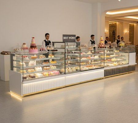 Our Bakery Display units are designed to beautifully showcase baked goods while maintaining freshness and hygiene. With elegant designs and durable construction, they enhance product visibility, attract customers, and add a premium touch to any bakery or café setting.